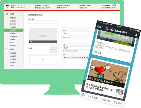 微生活素材管理與微信公眾平臺素材管理完全融合,操作一致,擁護(hù)可以非常方便的將自己的多圖文信息上傳至微生活平臺進(jìn)行管理。