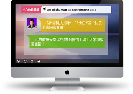 現(xiàn)場用戶關(guān)注活動主辦方微信公眾賬號,發(fā)送文字、表情、圖片消息就可上墻展示,迅速提升現(xiàn)場熱度,讓大家互動起來。