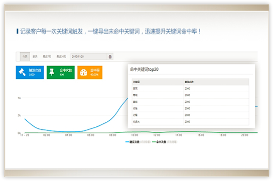 微生活后臺可以實時統(tǒng)計微信公眾號的粉絲關(guān)注情況和用戶語音請求數(shù),根據(jù)統(tǒng)計對相關(guān)推廣營銷活動效果及某些敏感因素對您的影響作出判斷,并對相關(guān)市場行為作出相應(yīng)調(diào)整,從一定程度上實現(xiàn)了對市場的監(jiān)控與及時應(yīng)對。